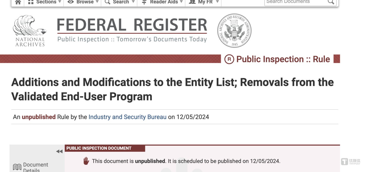 上述这些被列入实体清单的中国实体,美国供应商在未事先获得特殊许可证的情况下将被禁止向他们发货。此次新规于发布当天生效,某些管制措施的合规期限为2024年12月31日。