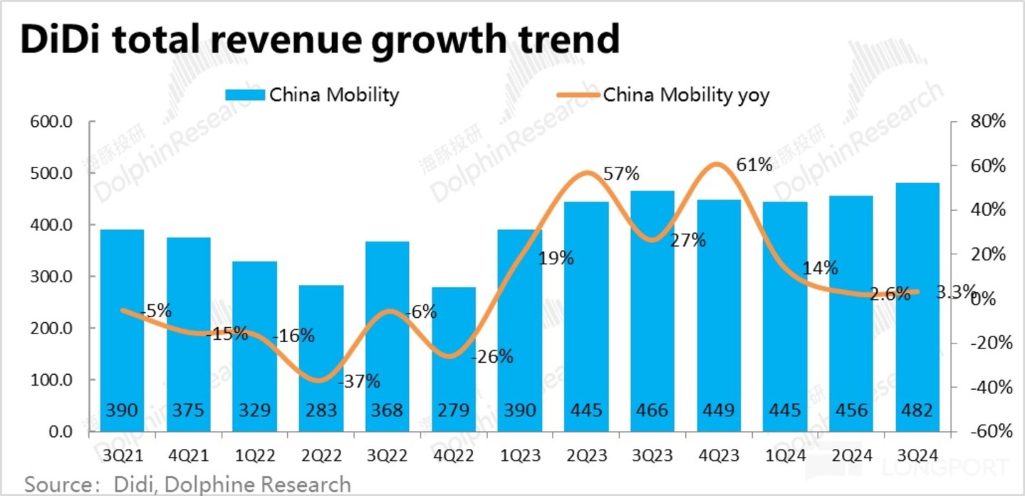 2、营收角度,滴滴国内出行本季收入 482 亿元,同比增长 3.3%,较上季的 2.6% 有一些改善,但显然仍是明显跑输对应 GTV 约 8% 的增速。大体仍可认为在目前弱需求的环境下,对消费者端补贴的需求依旧存在、且比较高。