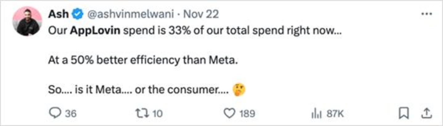 被夸上天的Axon2.0到底效果如何?Twitter上有个大模型应用产品的创始人(haus.io)想要验证Applovin的投放效果是否能匹配其爆发性的股价,拿自家产品做了一个量化实验,可以follow这个推文https://x.com/oliviaakory/status/1860776402510897445。