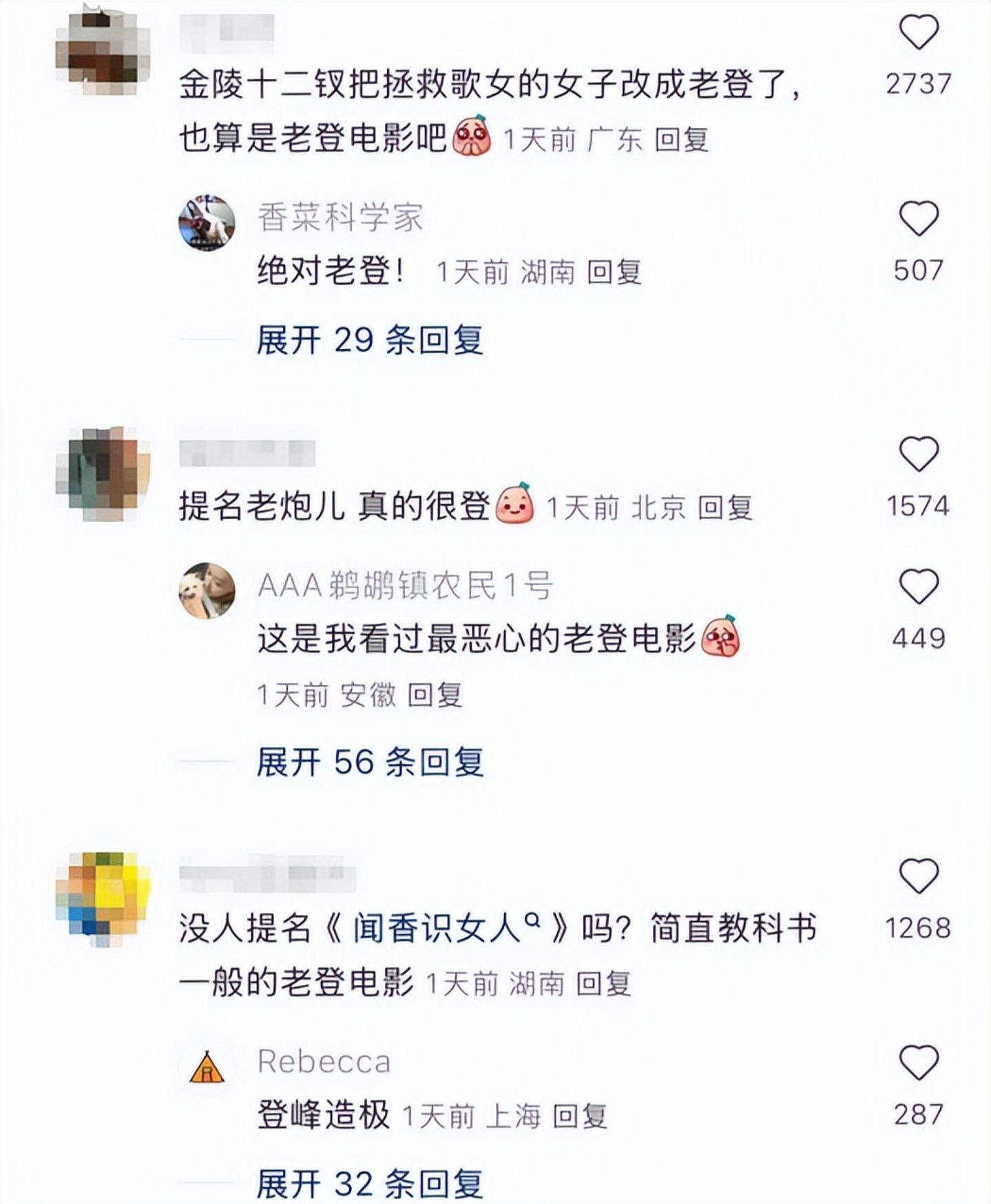 因为每当有网友提出这种论点,就有其他网友留言回复称“你喜欢老登电影”,仅此轻飘飘一句,便是“绝杀”。