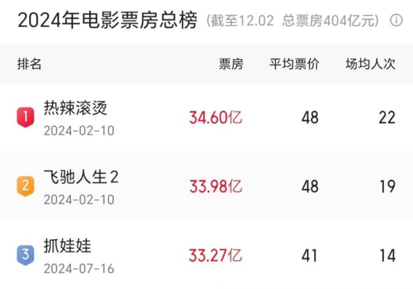 如果说《抓娃娃》上映前,鹿死谁手还尚未可知,但时日今日,已然可以说一句,《热辣滚烫》坐稳了年度票房冠军。