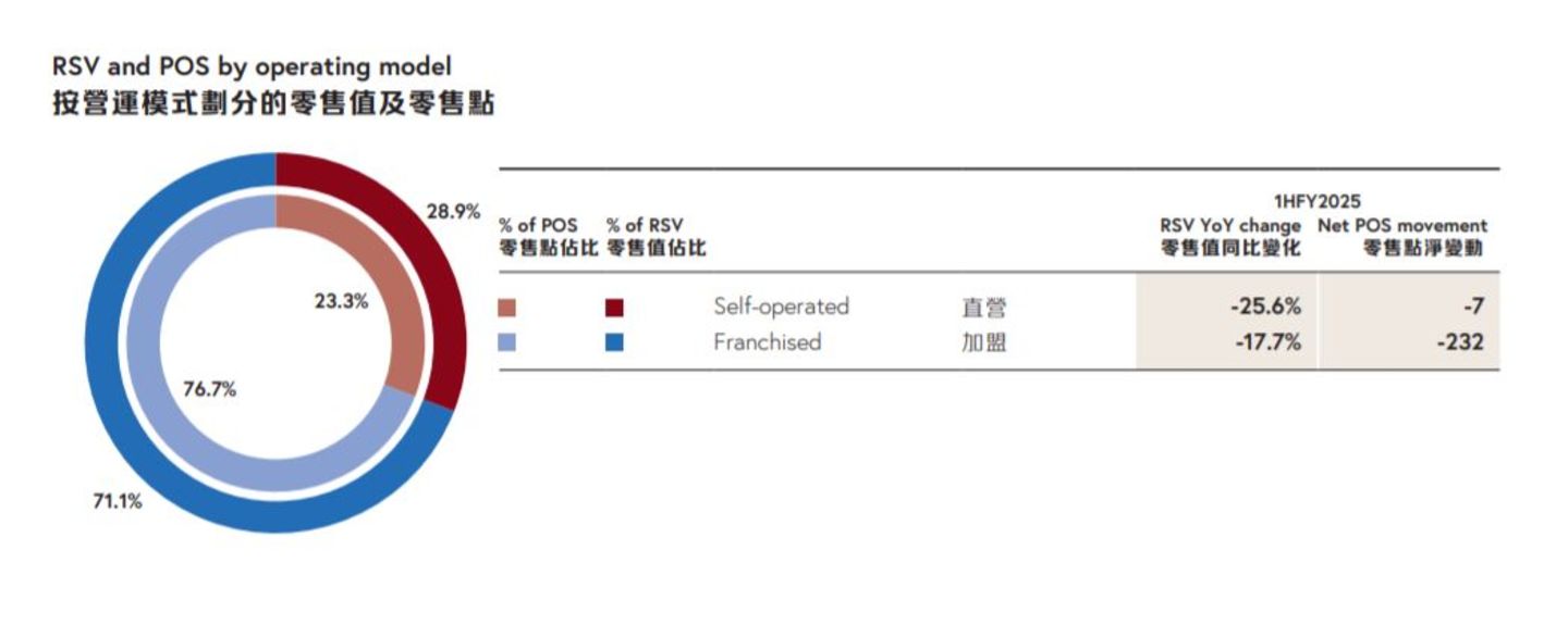 到了2024财年,当时年初预计开店600至800家,没想到最后内地净增的零售点净有143家。而进入2025财年,新开的店铺没有了,整个财年都在削减店铺,按照关闭门店分类,其中二线城市闭店73家,三线城市闭店52家,而四线城市闭店则达到了78家。