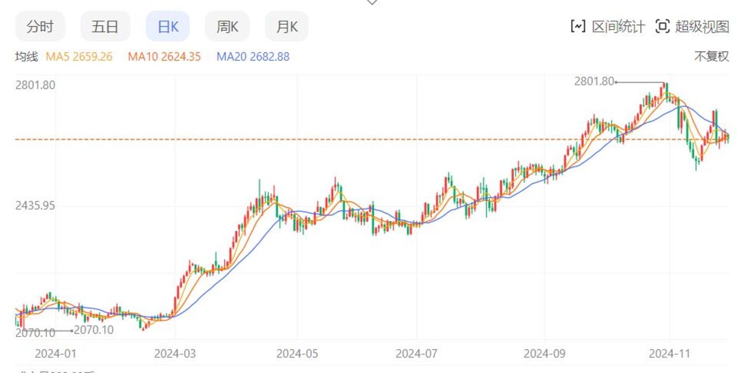 国际金价从年初的2160美元/盎司,一路飞跃式上涨,到了10月30日已经涨到了历年来的新高,达到了2801.80美元/盎司。
