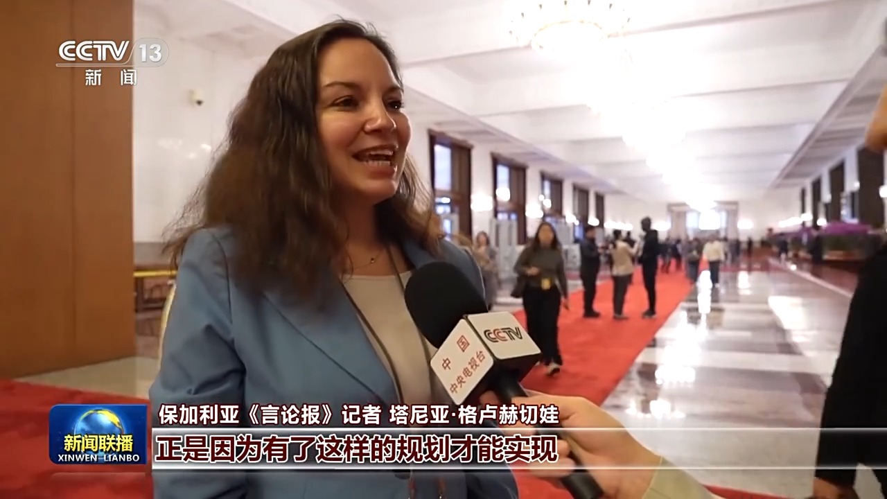 保加利亚《言论报》记者 塔尼亚・格卢赫切娃:我今年来报道两会就是为了关注“十五五”规划。中国已经用事实证明,正是因为有了这样的规划,才能实现如此迅速大规模的建设发展。
