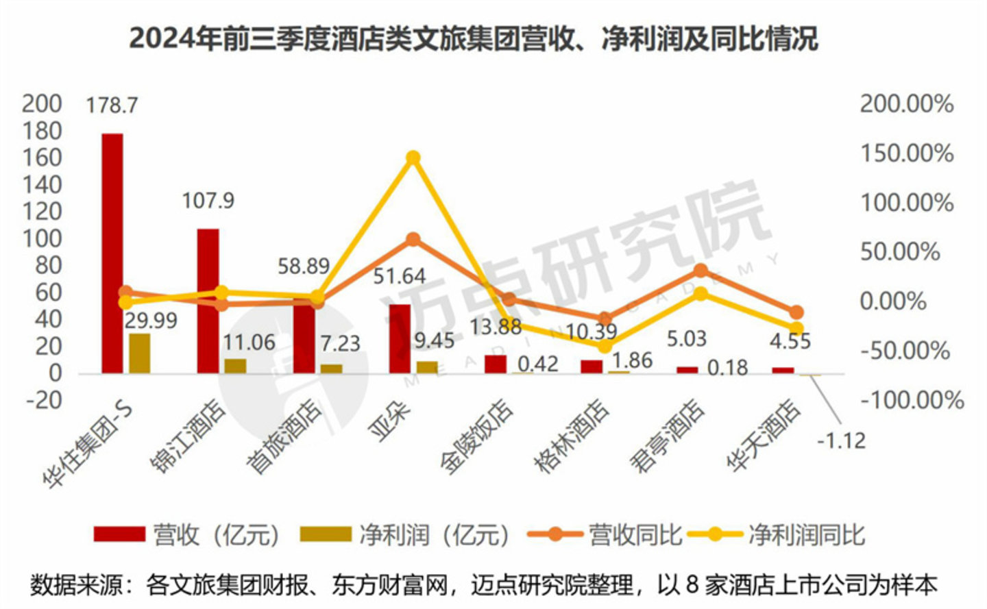 综上,3季度51家文旅集团中,营收和净利润实现“双增长和持平”的共有10家,具体为携程集团-S、华住集团-S、同程旅行、众信旅游、亚朵、岭南控股、大连圣亚、ST雪发、君亭酒店和云南旅游,表明在文旅消费回归理性、行业内卷和竞争加剧背景下,仍有一批企业顶住压力实现了经营业绩的稳定增长,挑战中亦蕴含新机。