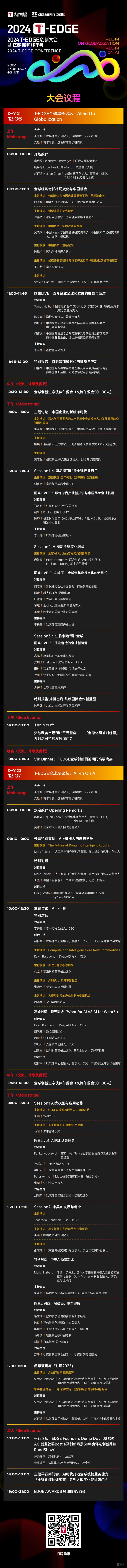 2024 T-EDGE以“ALL-in on Globalization ,ALL-in on AI”为主题,汇聚全球科技和商业领导者,共同探讨人工智能对全球各行业的巨大影响,以及企业全球化增长新格局新趋势。作为钛媒体集团每年年终举办的科技和财经领域的顶级盛会,T-EDGE一直代表了钛媒体在科技与经济前瞻性,以及推动国际创新交流上的高质量追求。2024 T-EDGE 旨在引领人工智能驱动全球市场的创新,并链接更为广泛的国际合作矩阵,也将深入探讨人工智能如何重塑未来、推动全球经济一体化以及如何在跨境领域开辟新机遇等热点话题。
