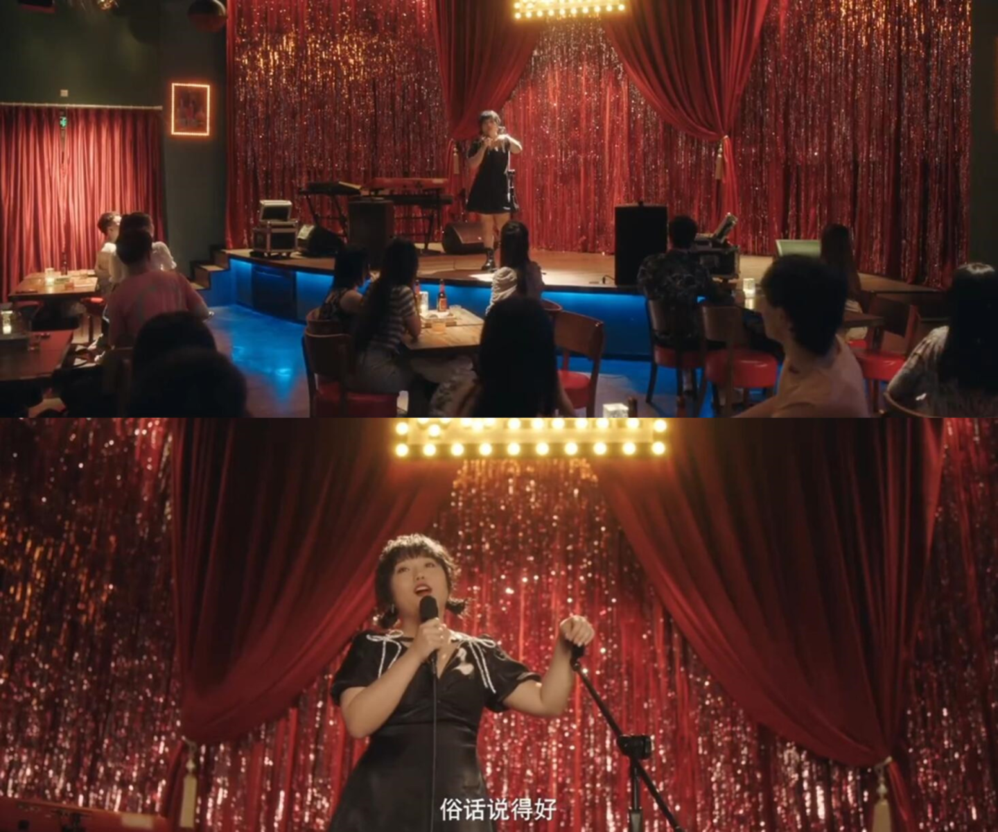 从创作角度来看,最近的两部脱口秀剧,女主角都有着大城市漂泊的社会打工人属性,脱口秀成了她们吐槽生活和宣泄感情的输出口,可以为故事带来有更多共情的社会表达;作为情感剧,《失笑》中脱口秀对于构建男女主CP的极致感、推进男女主感情线也有很强的作用力。