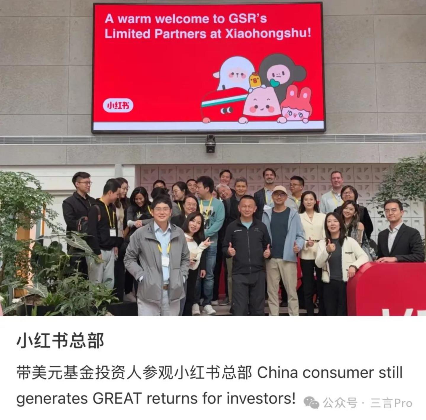 值得注意的是,朱啸虎上个月底带着美元基金投资人参观了小红书总部。