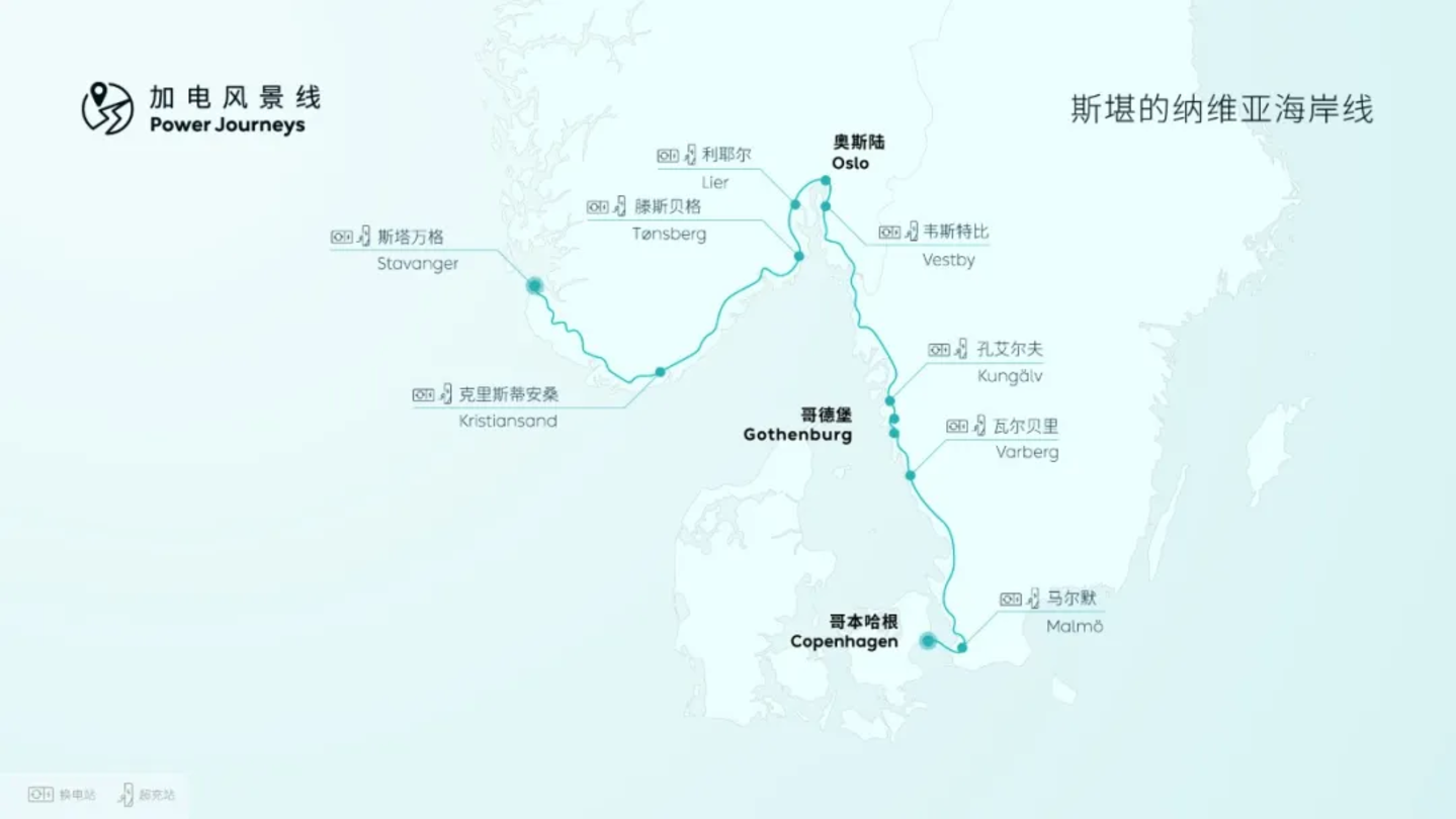 ▲蔚来在北欧布局的「加电风景线」