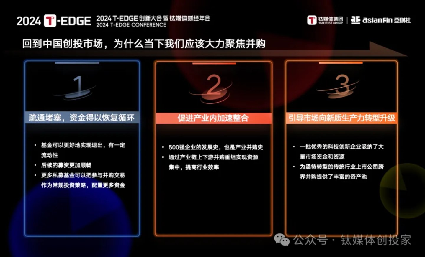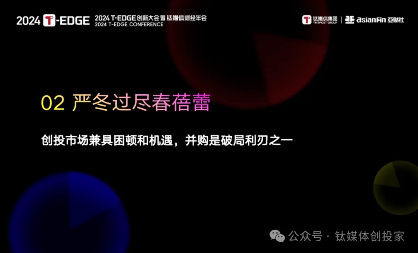 所以对于国内的一级市场参与者来说,在宏观经济挑战比较多的低速增长周期里,大家确实可以认真考虑多投入资源到存量市场,通过交易寻求较好的收益和回报。我认为大力发展并购,有很大机会带动创投市场整体复苏。