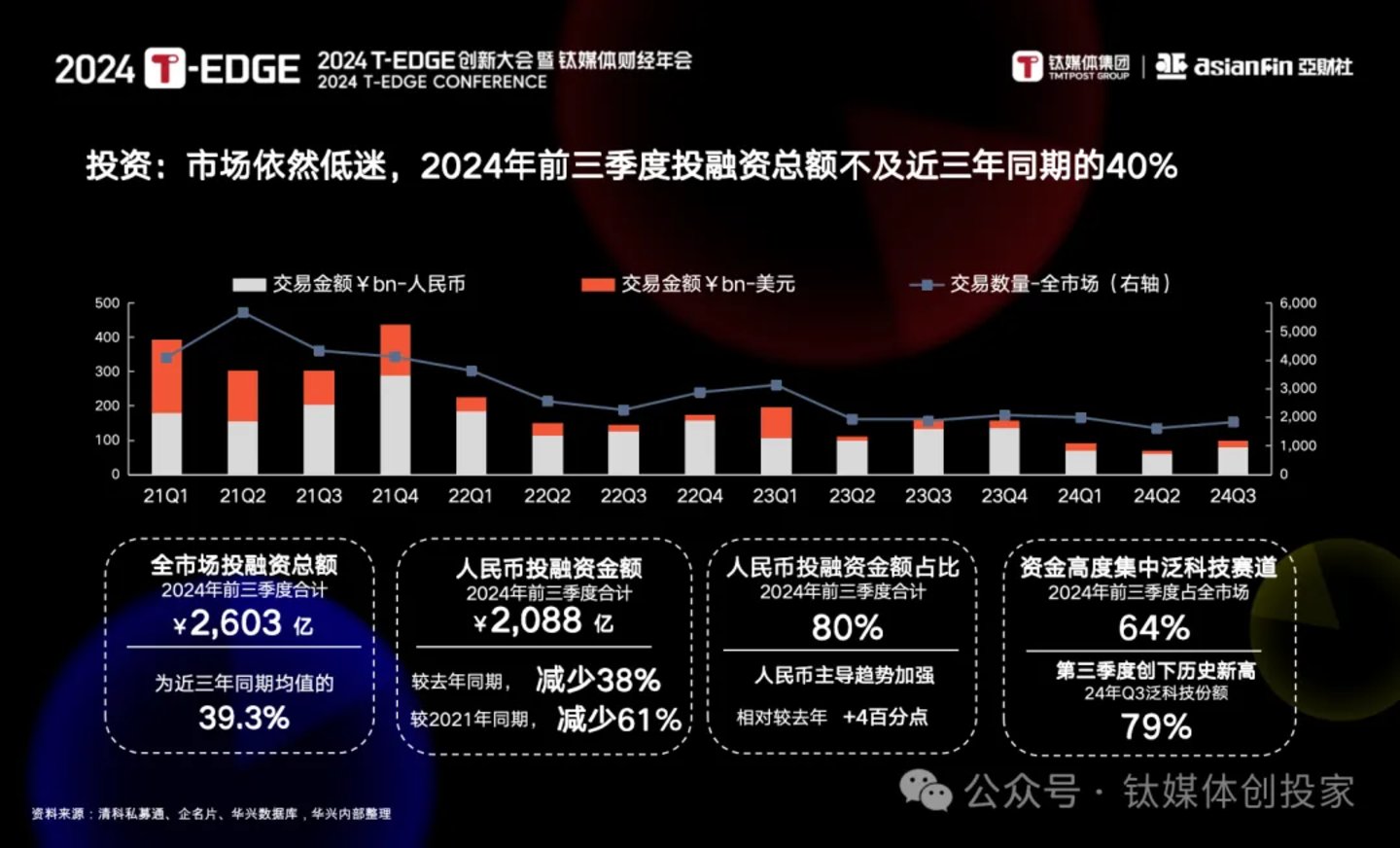 再看投资端,大家体感会更深,整体情况较为低迷,只有硬科技在政策的鼓励下,仍然较为活跃。