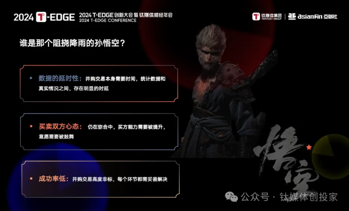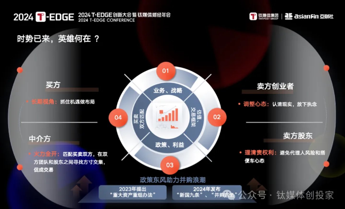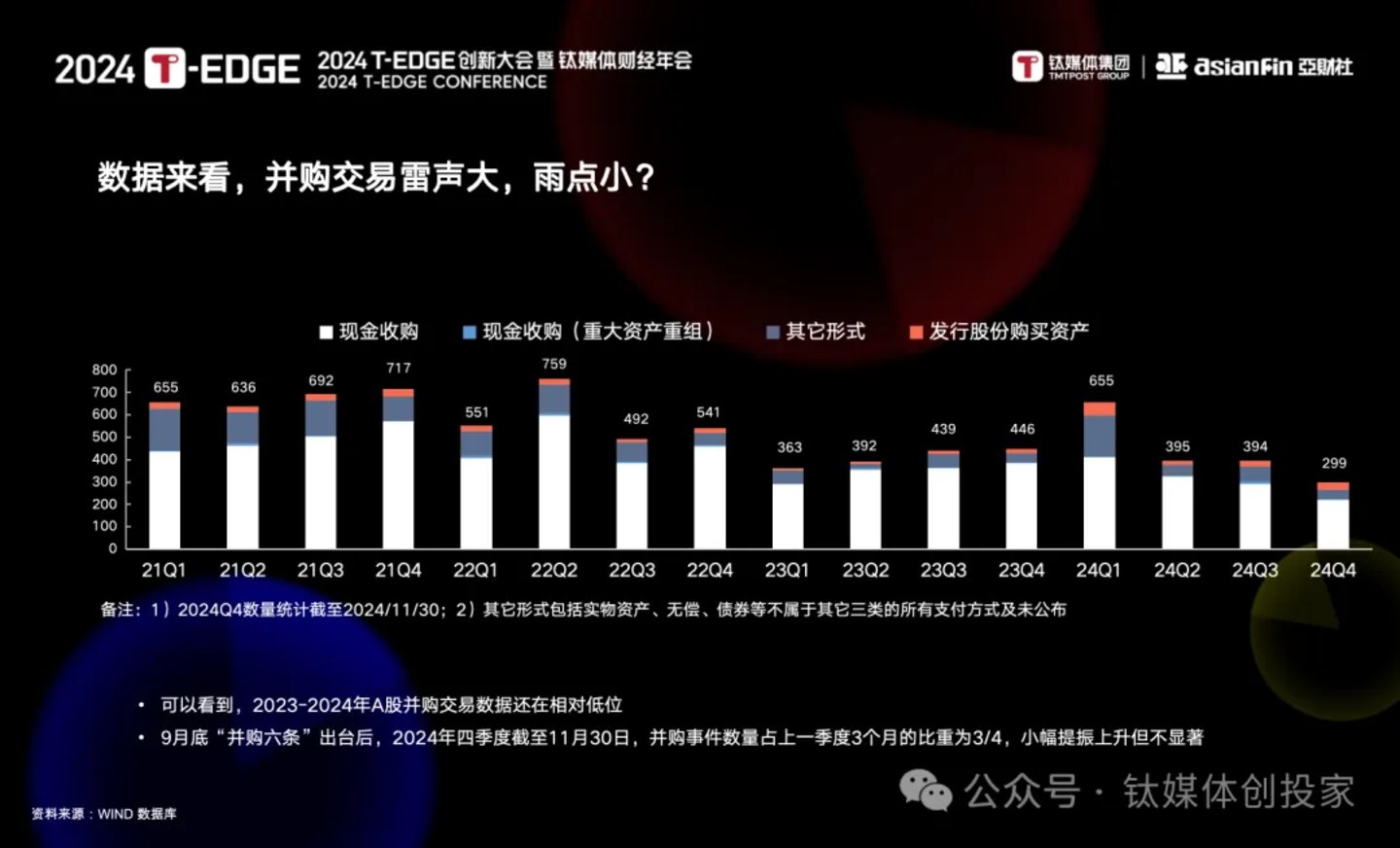此前,挑战是来自于买方的能力和意愿,以及买方受到的限制,所以我们认为,从9月开始出台的一系列宏观政策以及并购六条等具体举措,在诸多方面优化了整个市场买方的支付手段、估值方式、标的选择空间,使得他们买的能力以及买的意愿上都得到了很大程度的提升。