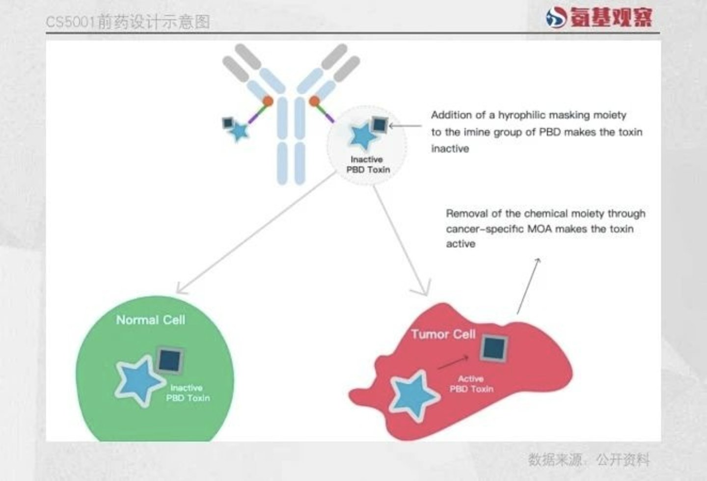 在这一逻辑下,以拓扑异构酶Ⅰ抑制剂、PBD(吡咯并苯二氮卓类)等DNA合成抑制剂成了新一代ADC药物毒素的首选,CS5001采用的正是PBD。