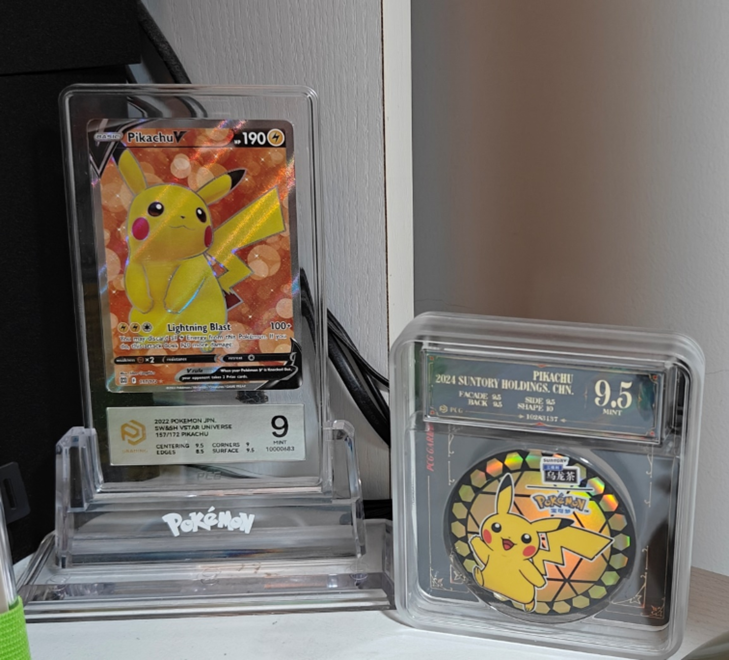 作为一名集换式卡牌的爱好者,UP主鱼犬菌非常喜欢收集宝可梦相关的卡牌以及其他卡面设计精美的明星收藏卡、动漫收藏卡,例如不凡玩品的LPL明星卡、武士道的各种动漫卡牌等。出于保存、收藏和方便展示的目的,她也常常会将自己的卡牌送到PCG、保粹等机构进行评级。