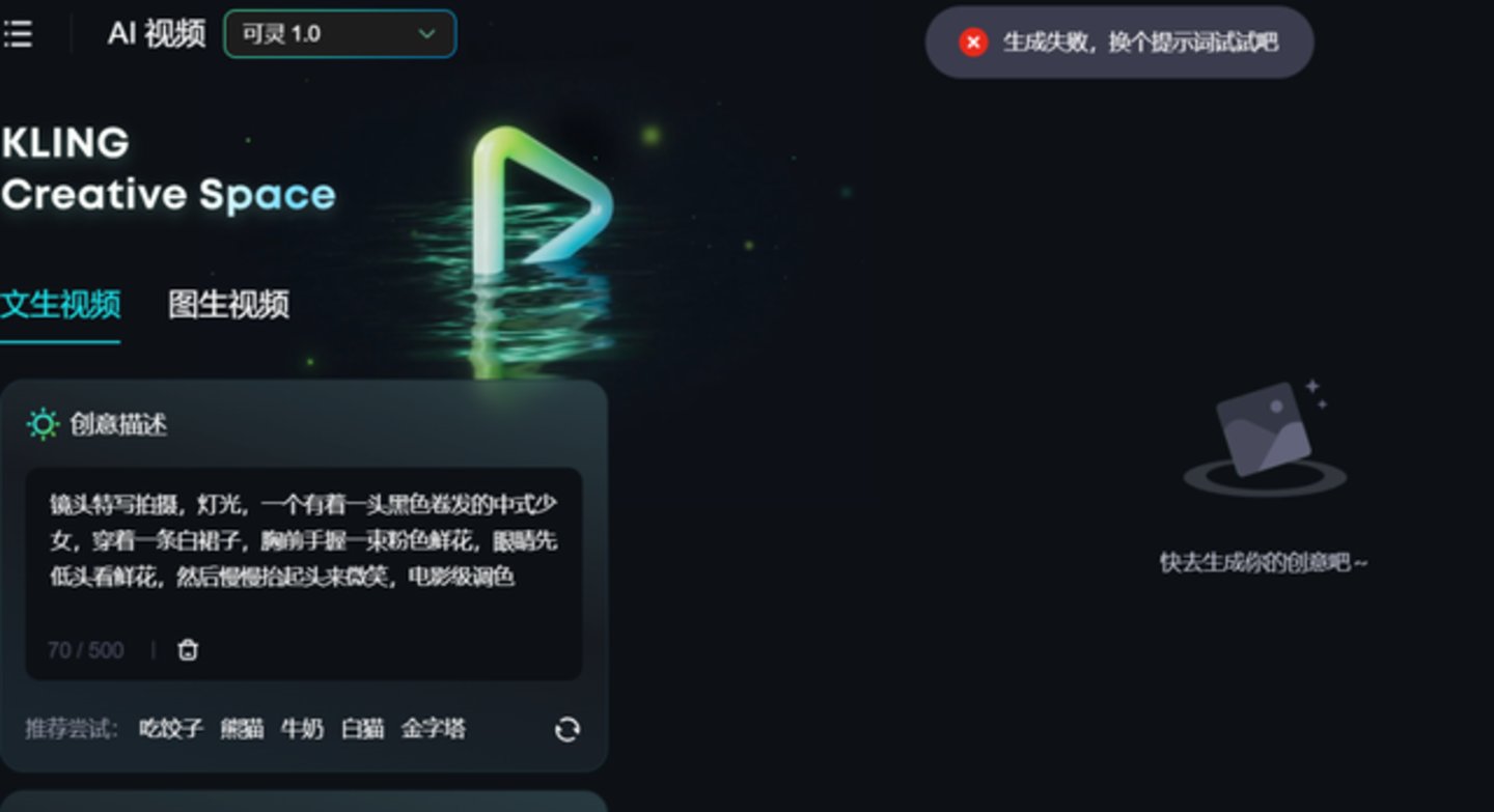 从生成效果来看,几家都理解了特写拍摄、少女、裙子、粉色鲜花、低头看花、微笑等人、物和动作,但问题出在指令解读上,比如可灵没有读懂“一个有着一头黑色卷发的中式少女”,随后我们换成“一个中式少女、黑色长卷发”才成功生成。
