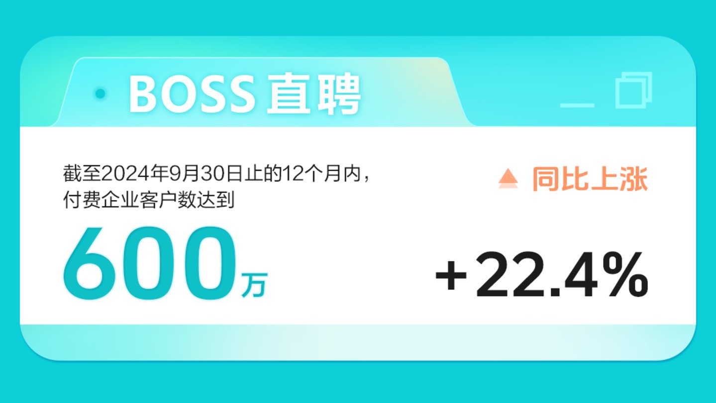 用户增长是现阶段公司增长的重要引擎。三季度公司APP端平均月活用户(MAU)规模为5800万,同比增长30%。2024年1-9月累计新增完善用户超过4000万。在第三季度,平台新增发布职位数同比增长18%。截至2024年9月30日止的12个月内,向公司付费的企业客户数达到600万,同比上涨22.4%。