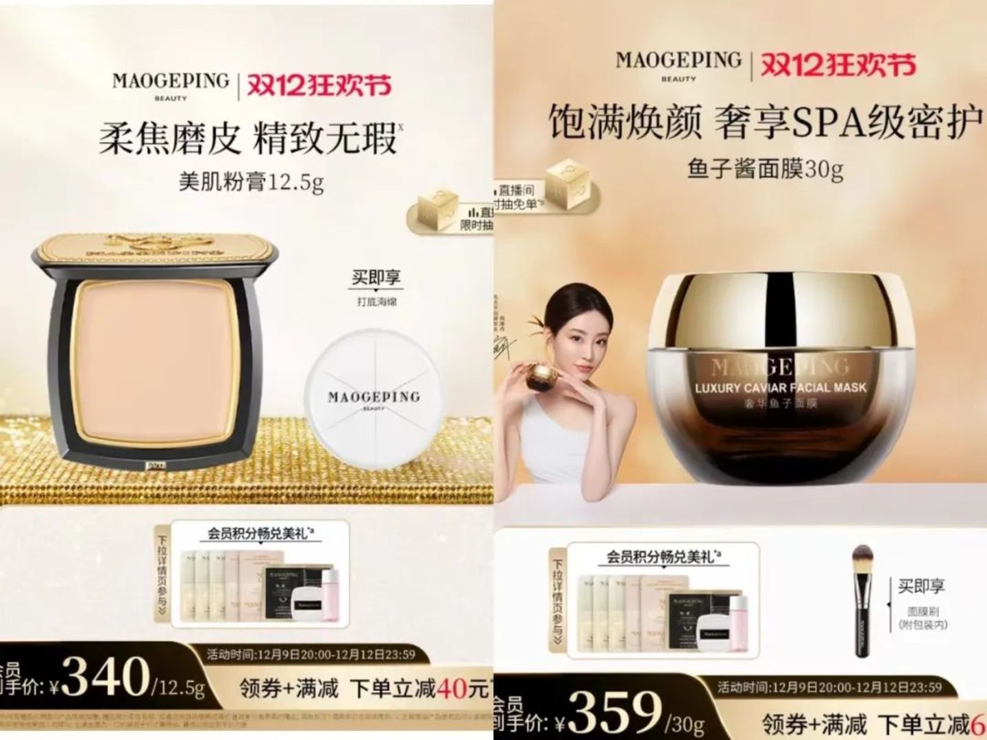 毛戈平在其护肤品的营销侧,会与其彩妆单品进行高度关联。以鱼子酱系列为例,除了深入挖掘产品的功效和成分之外,会强调妆前常使用鱼子面膜的肤感:轻盈、保湿、渗透。不难看出,把护肤和彩妆做强绑定,可以连带着做用户认可转移,把原本高客单价彩妆人群的积累,同时变成了护肤的客群。