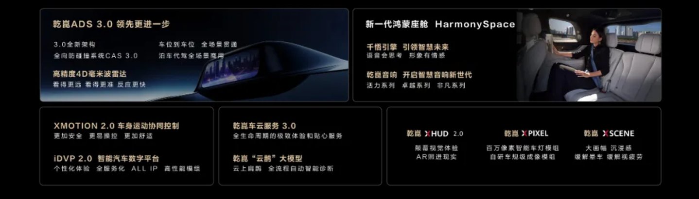 其中,消费者最为熟知的当数华为乾崑ADS 3.0智驾系统和新一代鸿蒙座舱HarmonySpace。