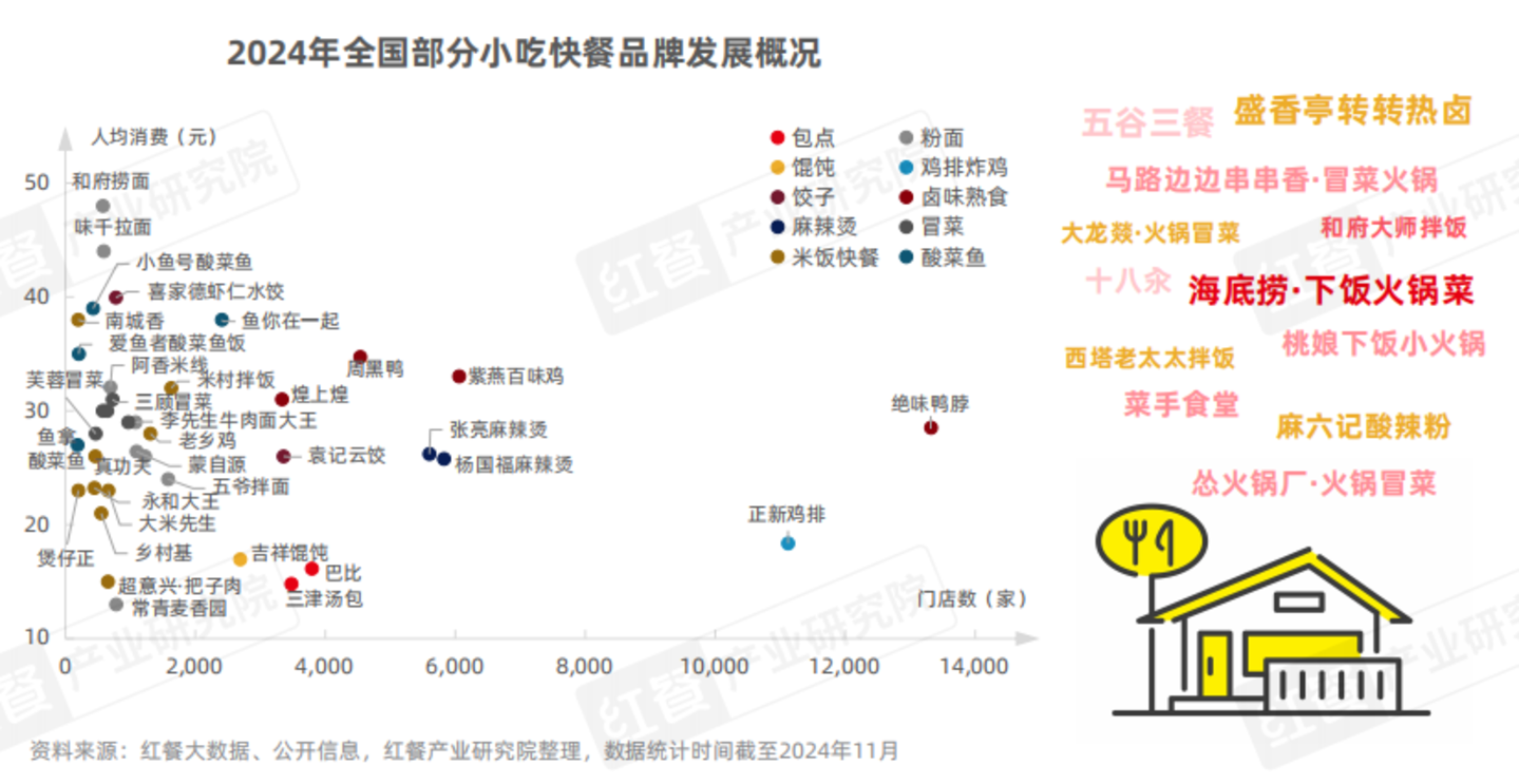 小吃快餐赛道的发展潜力也被其他赛道的品牌所关注。中式正餐、火锅、烤肉等赛道均有品牌相继推出快餐品牌或相关产品,入局小吃快餐赛道。