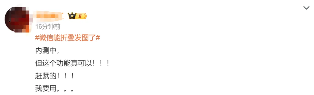 不过,需要注意的是,此次折叠发图属于测试阶段,仅部分用户可见,官方尚未公布全量推送时间。