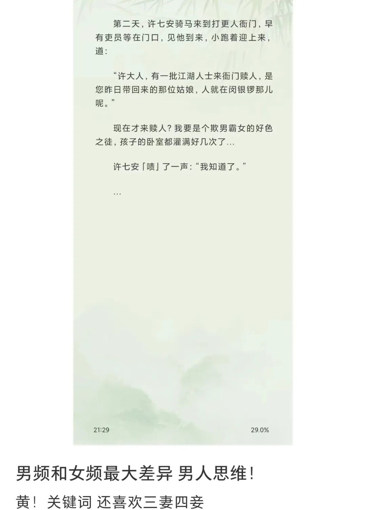 讽刺的是,相比男频网文平台的宽容,内地女频的内容阉割却是独一份。比如《庆余年》《大奉打更人》等男频爆款不乏出现恶俗、黄梗描写,甚至轻而易举便能通过审核。