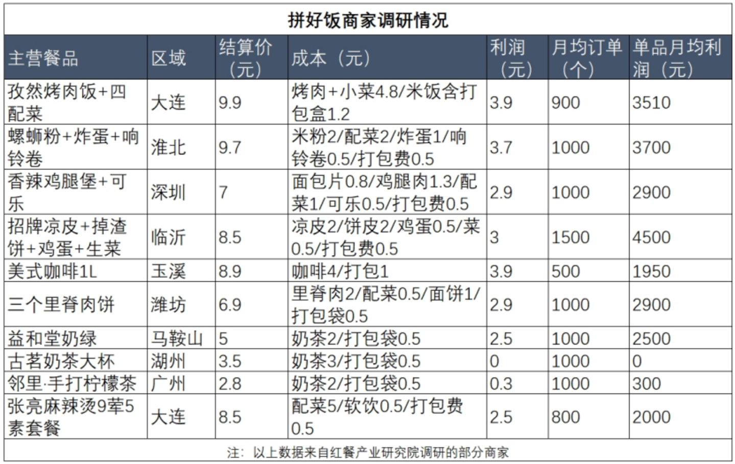 |红餐产业研究院调研显示,拼好饭单品月均利润近3000元