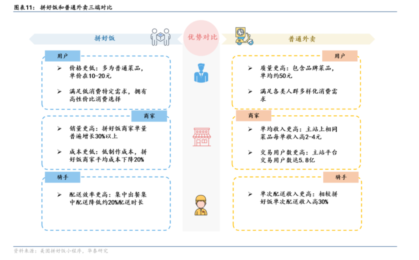 |华泰证券报告显示,拼好饭通过集中出餐和集中配送降低配送时长