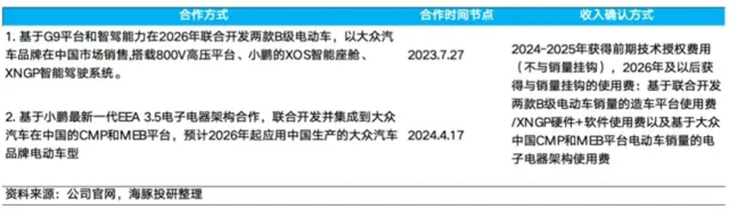 当然另外一个就是小鹏对大众的合作,其中的一部分就是授权XNGP智能驾驶系统给大众,但前期不与销量挂钩,2026年以后才有可能与销量挂钩。