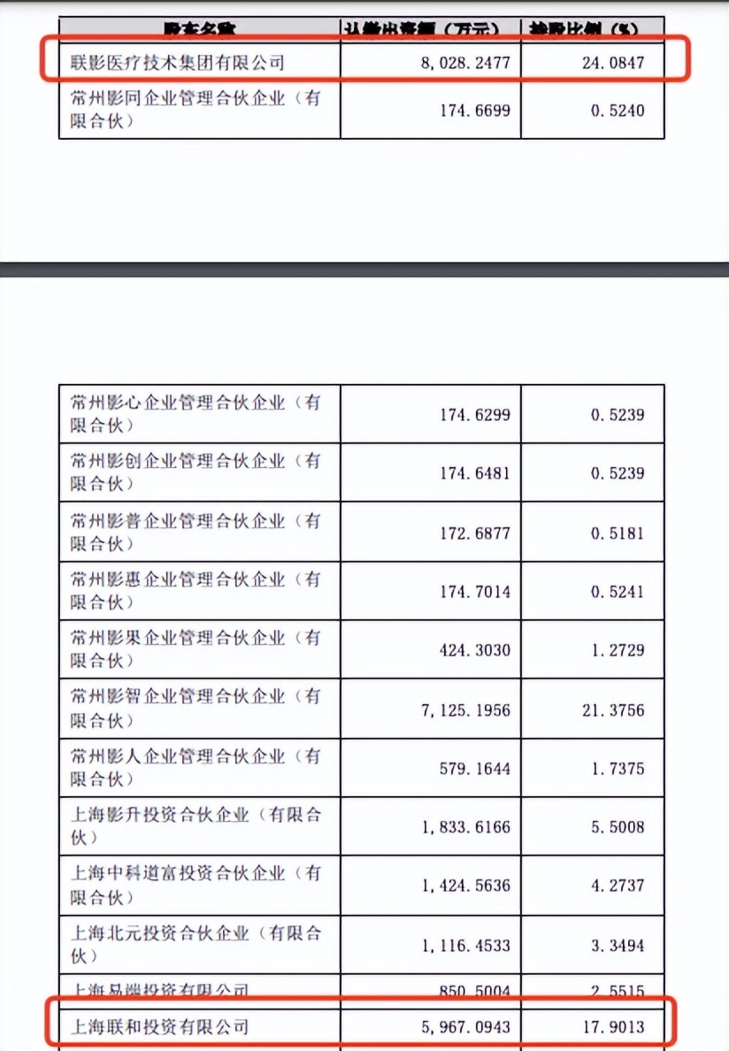增资后,联影智能的股东结构也随之调整,其中,联影医疗的持股比例为24.0847%,上海联合持股比例为24.0847%,联影医疗持股比例为0.2849%。