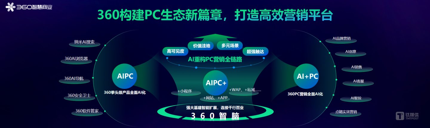 以PC端为根基,360也正在面向全域扩展AI时代PC营销的能力及价值边界,打造存量时代PC营销新范式,以“AIPC+”链接千行百业。