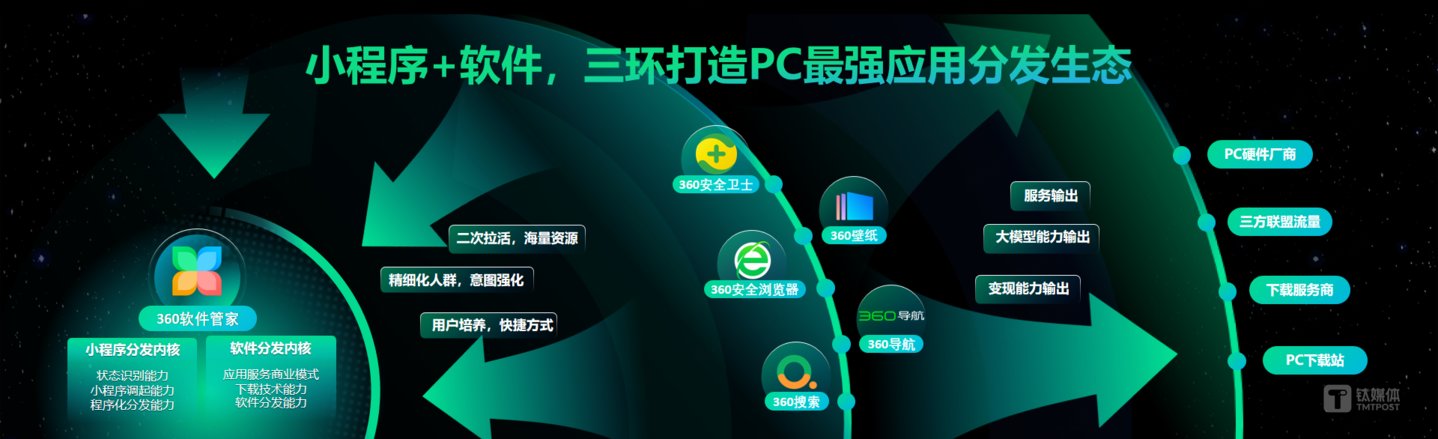 目前,360软件管家已支持一键调起小程序,一方面,完善PC移动双端用户体验,提供给开发者、创业者更多的业务增长空间,另一方面,可以将服务、大模型能力、变现能力“打包输出”给PC硬件厂商、媒体联盟伙伴、下载服务商、PC下载站等下游合作伙伴,进一步将流量优势转化为生产力,助力媒体合作伙伴变现效率提升。