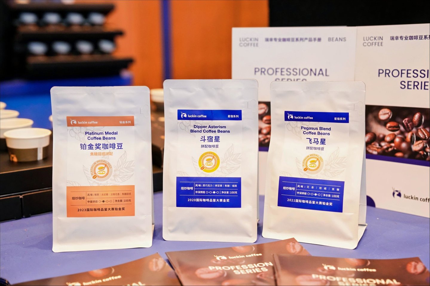 首批推出的专业咖啡豆产品可谓“星光熠熠”:飞马星拼配咖啡豆曾获得2021年国际咖啡品鉴大赛铂金奖,含有花香、柑橘、焦糖等风味;斗宿星拼配咖啡豆曾获得2020年国际咖啡品鉴大赛金奖,含有黑巧克力、烤坚果、焦糖、烟熏等风味;铂金奖咖啡豆曾获得2023年国际咖啡品鉴大赛铂金奖,含有榛果、太妃糖、淡雅花香、焦糖甜感等风味。