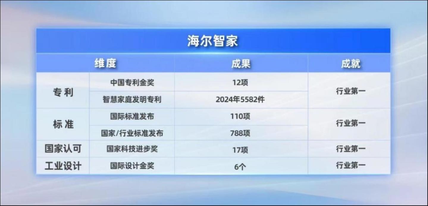 正是基于这样的认知,让海尔智家实现了4个方面绝对引领。专利方面,海尔智家获得12项中国专利金奖,行业最多;标准方面,海尔智家累计主导和参与国际标准发布110项,国家/行业标准发布788项,行业最多;工业设计方面,其获得国际设计金奖6项,行业最多;国家认可方面,海尔智家累计获国家科学技术进步奖17项,行业最多。