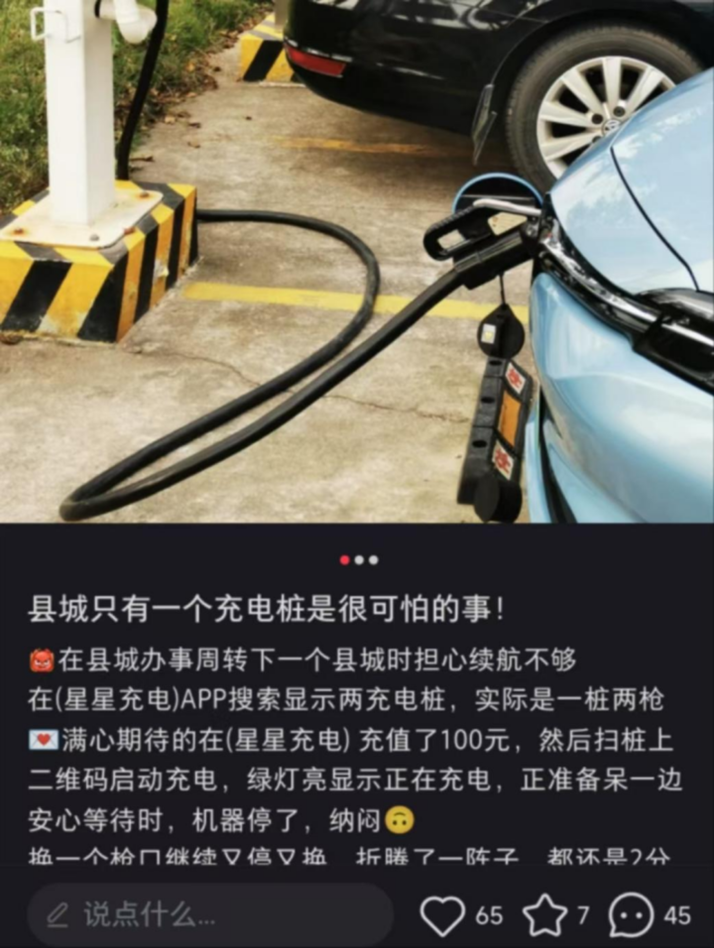 网络上对于县城充电桩少的吐槽帖