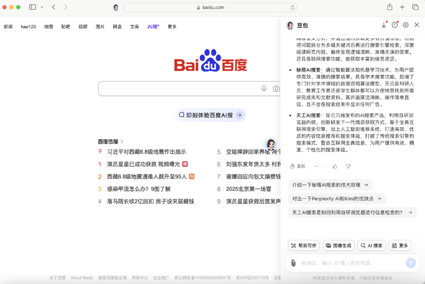 另一方面,越来越多的巨头加入AI搜索赛道,且相比于以内容平台为主推出的站内AI搜索,这些巨头布局更加全面,甚至字节跳动豆包电脑版直接瞄准了浏览器赛道。