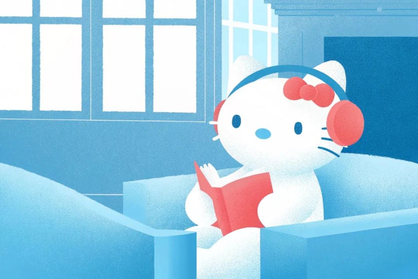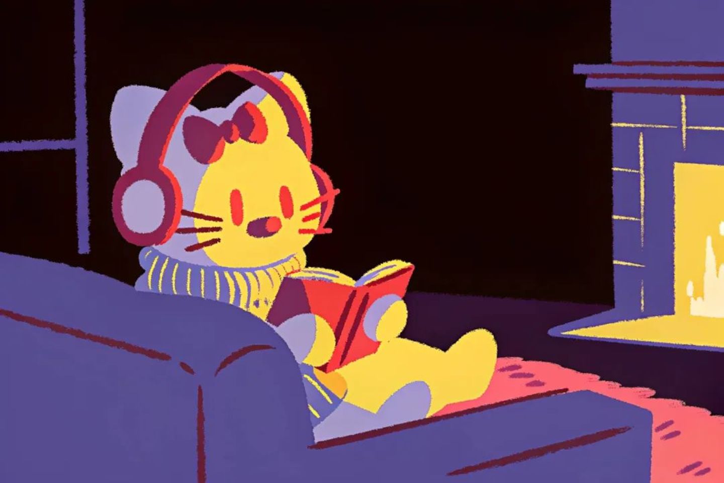 ● Recraft上有不同风格预设,以上图片为同一提示词“Hello Kitty is wearing headphones and reading a book on the sofa. The background is a warm room with a fireplace”,分别应用Hard Flash、Retro Snapshot、Multicolor、Grain 2.0、Neon Calm风格。