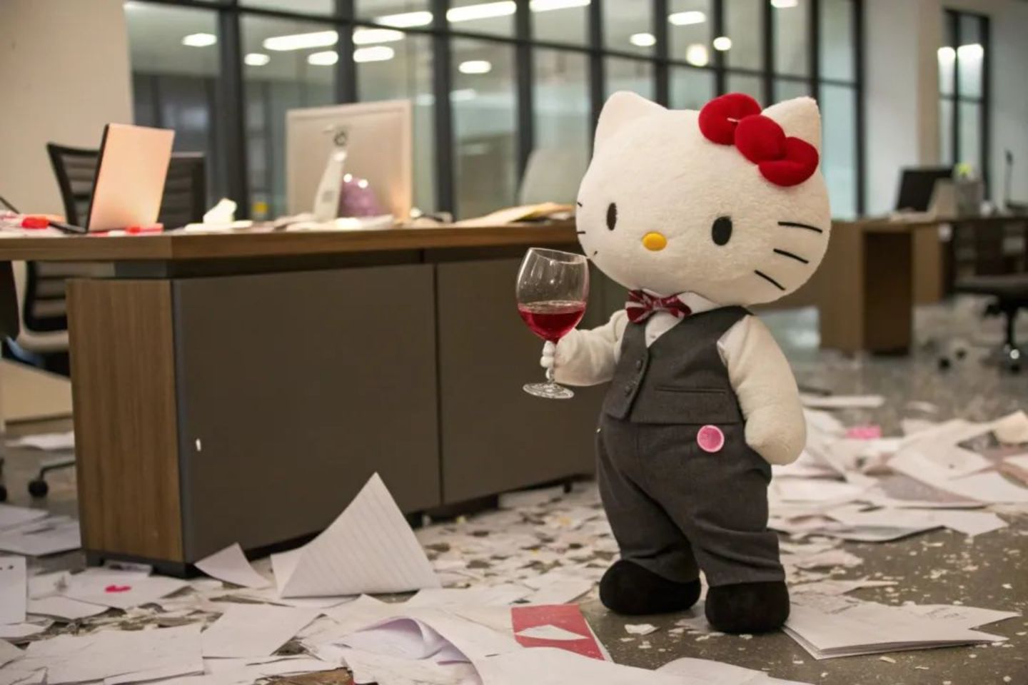 2024年下半年在社交平台上最火的图片,一类是hello kitty整顿职场,坐在起火的电脑前平静地喝咖啡,抡起大锤砸办公室;另一类是“梦核”胶片风,色彩浓郁、对比度高,构图荒诞,被称为“梦境模拟器”——这两种风格的图片都由AI设计软件Recraft生成,后者来源于Recraft的预设风格“Hard Flash”。