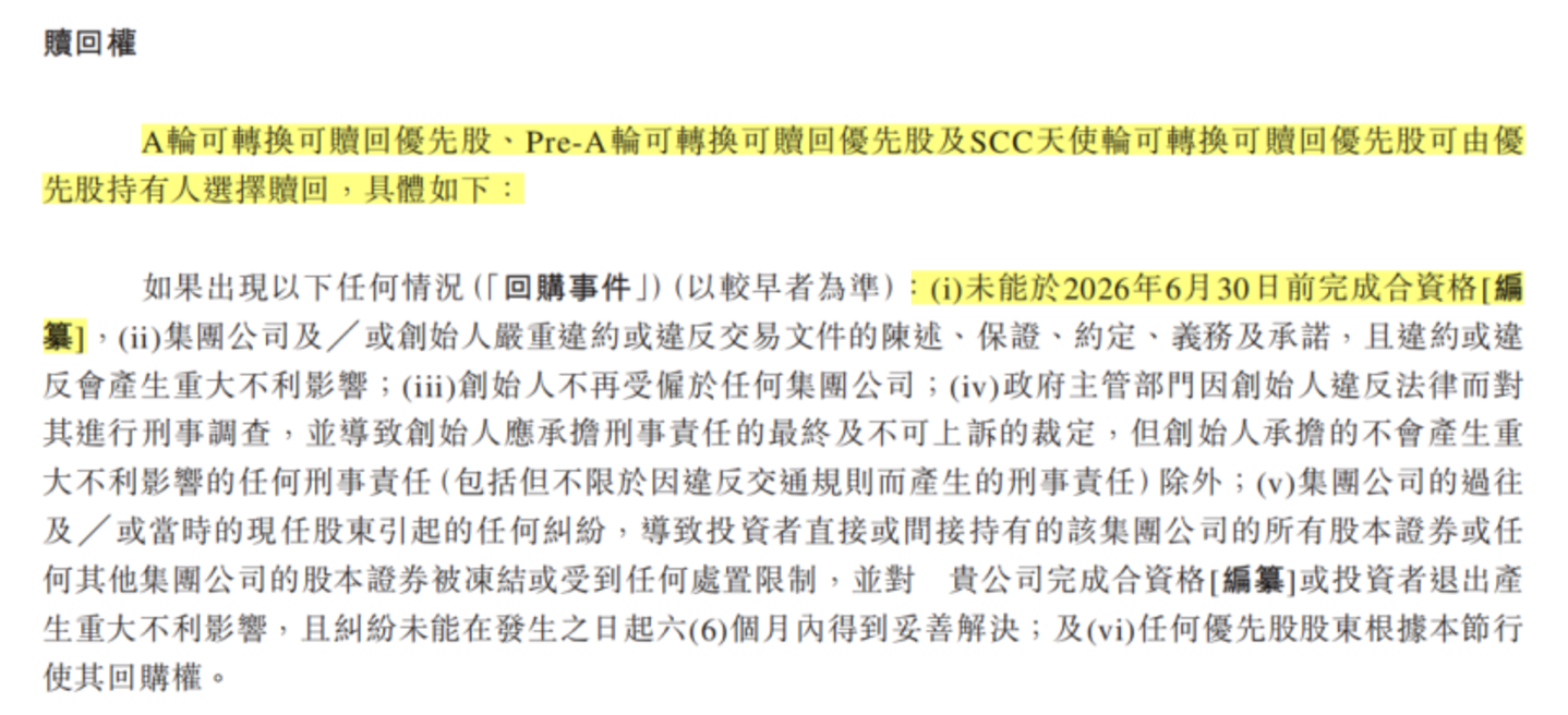 而在赎回权的触发条件中,就包括了“未能于2026年6月30日前完成合资格”;据21世纪经济报,所谓合资格,可能即为完成上市,“布鲁可背负对赌协议冲刺上市”。
