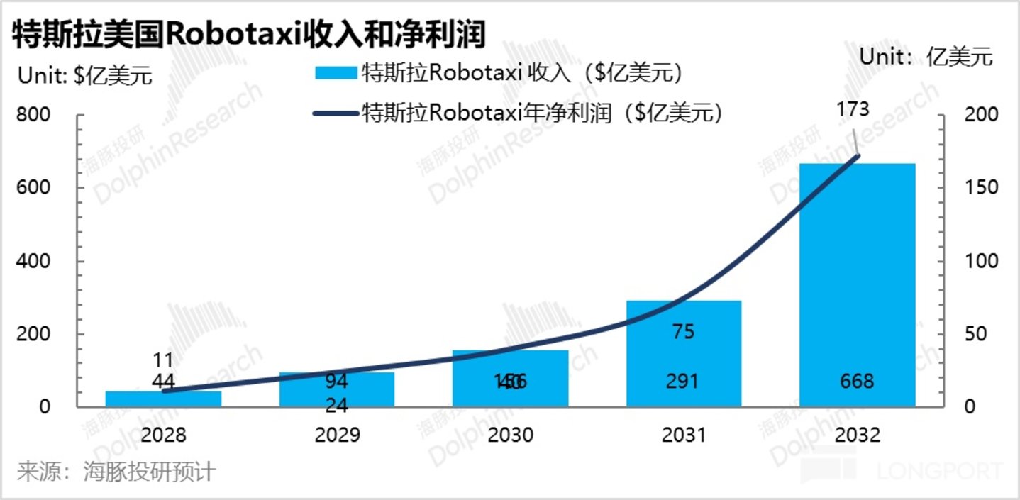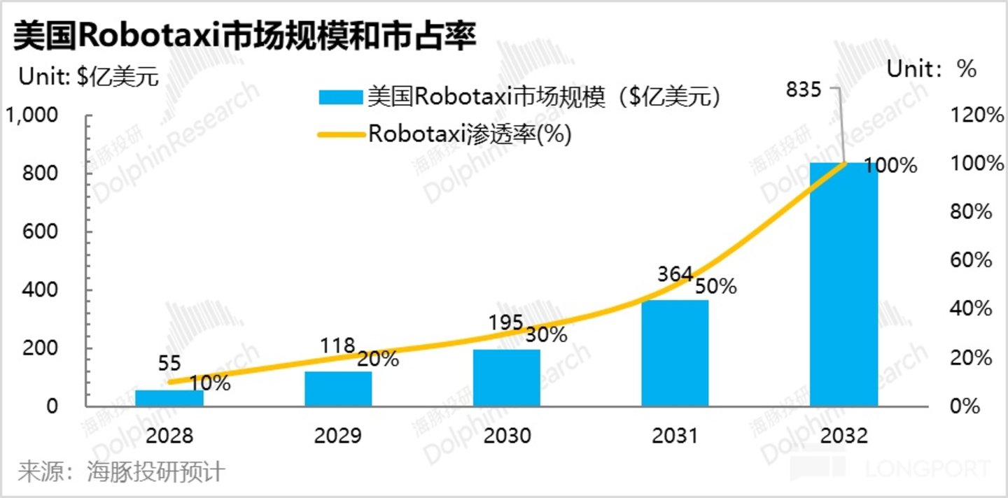 所以在对特斯拉Robotaxi业务的这块估值,海豚君仅作简单假设用于参考: