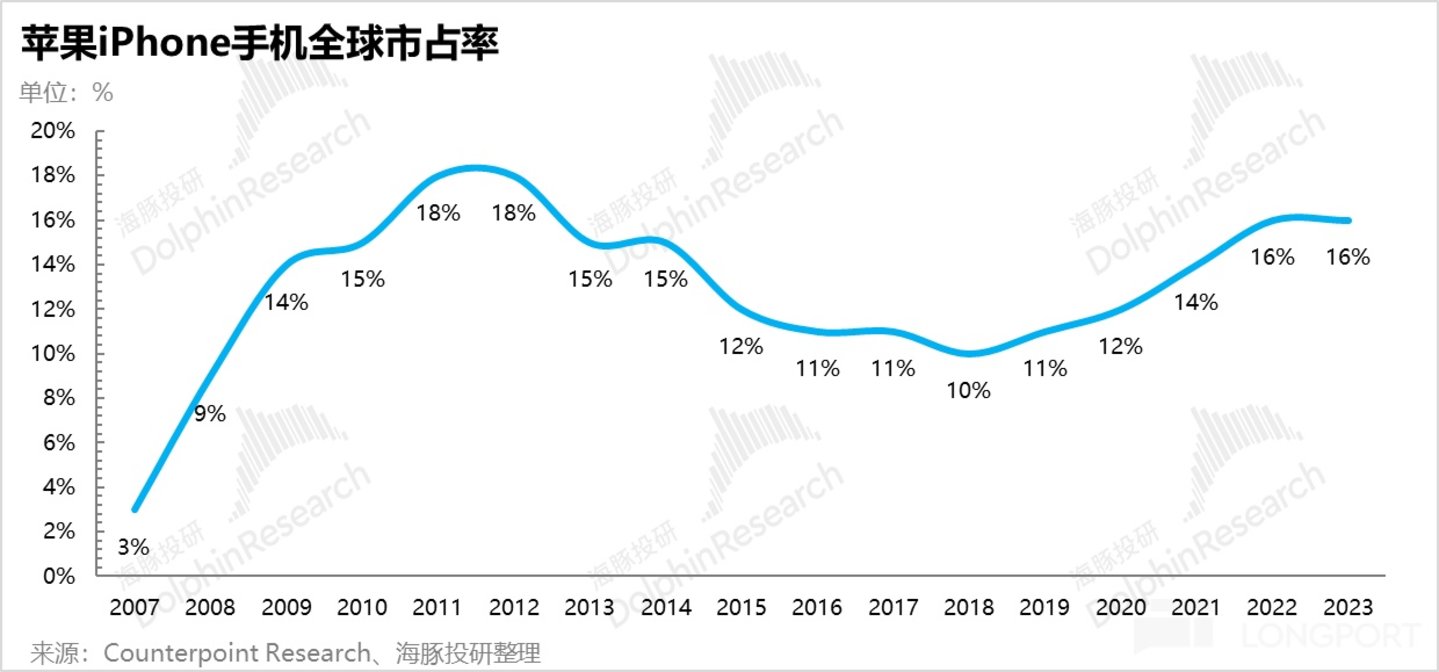 苹果软硬一体化闭环建立使苹果在全球手机市占率迅速拉升:2010年时诺基亚仍然还是全球手机的老大,拥有全球约33%的手机市场份额,而2011年,诺基亚手机市场份额降至23%(iPhone 4发布后),2013年后,诺基亚手机已经出售给微软,基本已经退出了手机市场的竞争。