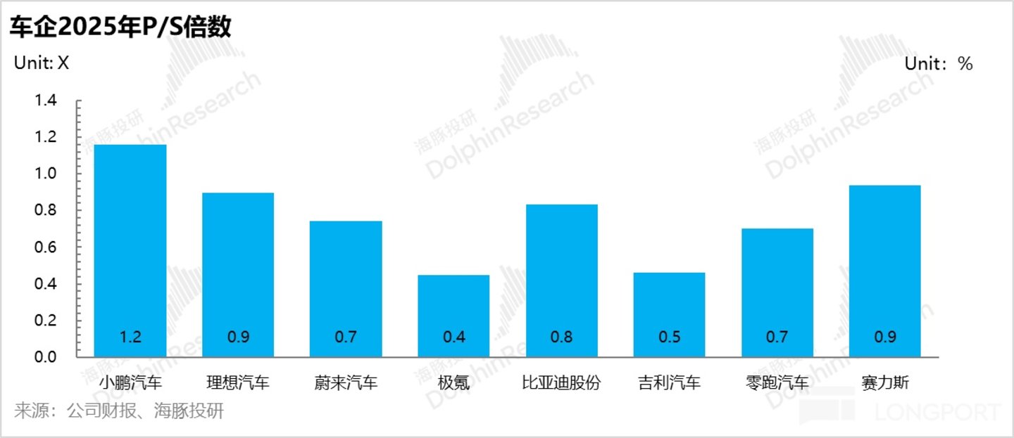 但反观国内车企,目前估值最高的小鹏也仅有1.2倍P/S,而其余新能源车企普遍P/S倍数已经不到1倍,基本上都没有把智驾变现的预期打进估值,仍然还是一个基于卖车硬件端的估值,海豚君认为,在这波智能化演变的趋势下,国内紧跟端到端路线的头部玩家$小鹏汽车.US 和$理想汽车.US 反而更有机会。