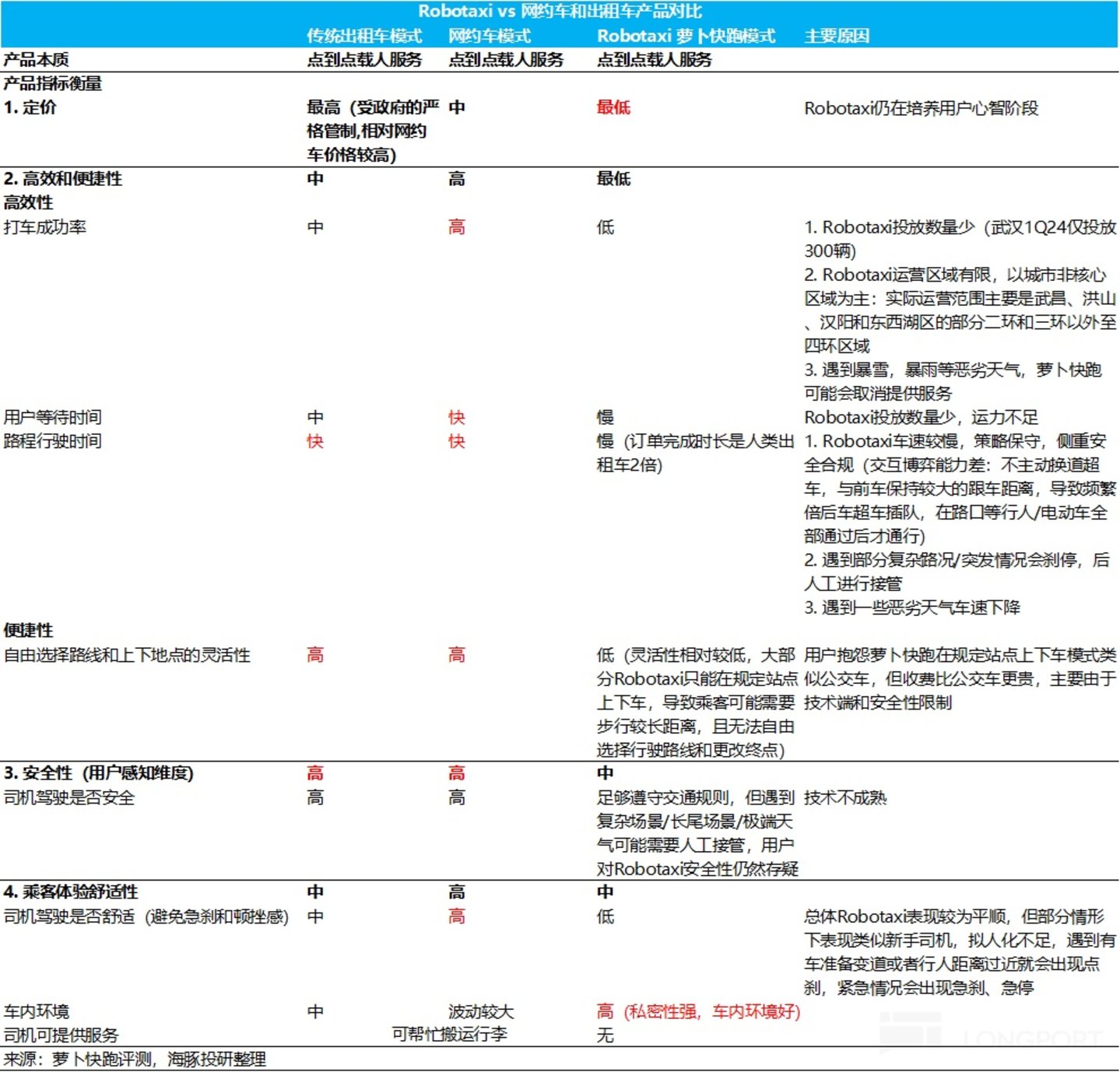 但由于萝卜快跑提供的产品本质相比网约车没有发生根本性的改变,都是点到点的载人服务,海豚君认为问题落在了萝卜快跑产品侧的“缺陷”。