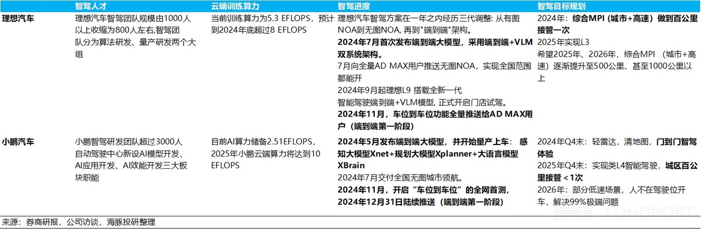 端到端路线实现了自动驾驶算法从规则驱动到数据驱动的转变,使竞争的核心因素变成了高质量数据+后端训练算力,以及智驾的技术人才储备作为辅助。