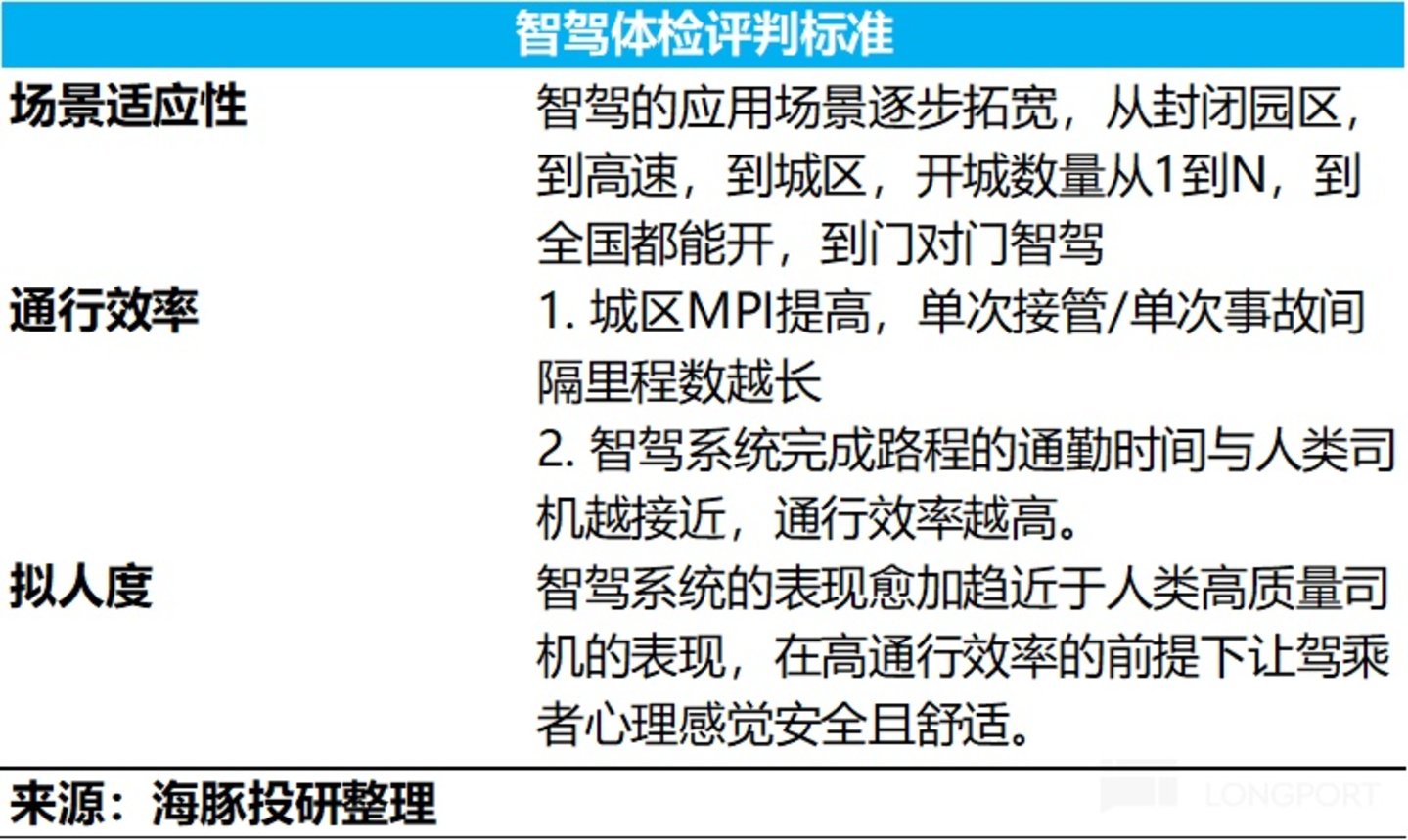 而与网约车对于载人服务的产品要求类似,海豚君认为乘用车车主对于智驾体验感的要求,同样遵循场景适应性,通行效率,拟人度三个维度。