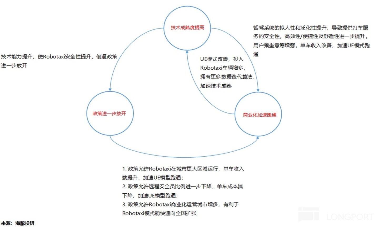 从上述对于萝卜快跑UE模式的分析可看出,Robotaxi与其他平台经济的商业模式最大的不同点在于,平台经济更多的是依赖于规模效应带来的边际成本下行,而Robotaxi商业模式能否跑通的真正核心因素反而在于技术成熟度的提高(政策端的本质也需要先技术成熟提高来倒逼政策放开),这也是Robotaxi提前布局的先发优势并不大,各家在技术不成熟的情况下投入的Robotaxi车辆也并不多的原因。