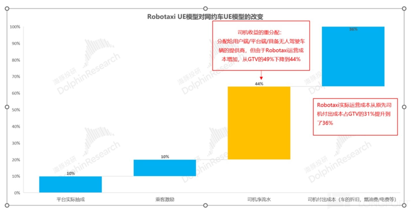 在《特斯拉 “暗度陈仓”,Robotaxi 故事只是 “幌子”?》里,海豚君其实已经提到了Robotaxi对传统网约车UE模式的变化,得出的结论是: