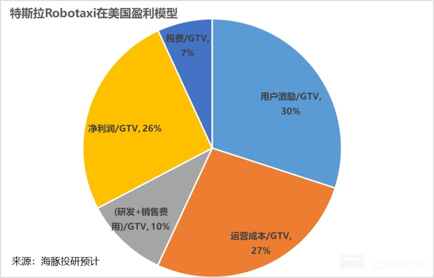 同样如果让利35% GTV给乘客,Robotaxi自运营方将拿到GTV的30%左右。