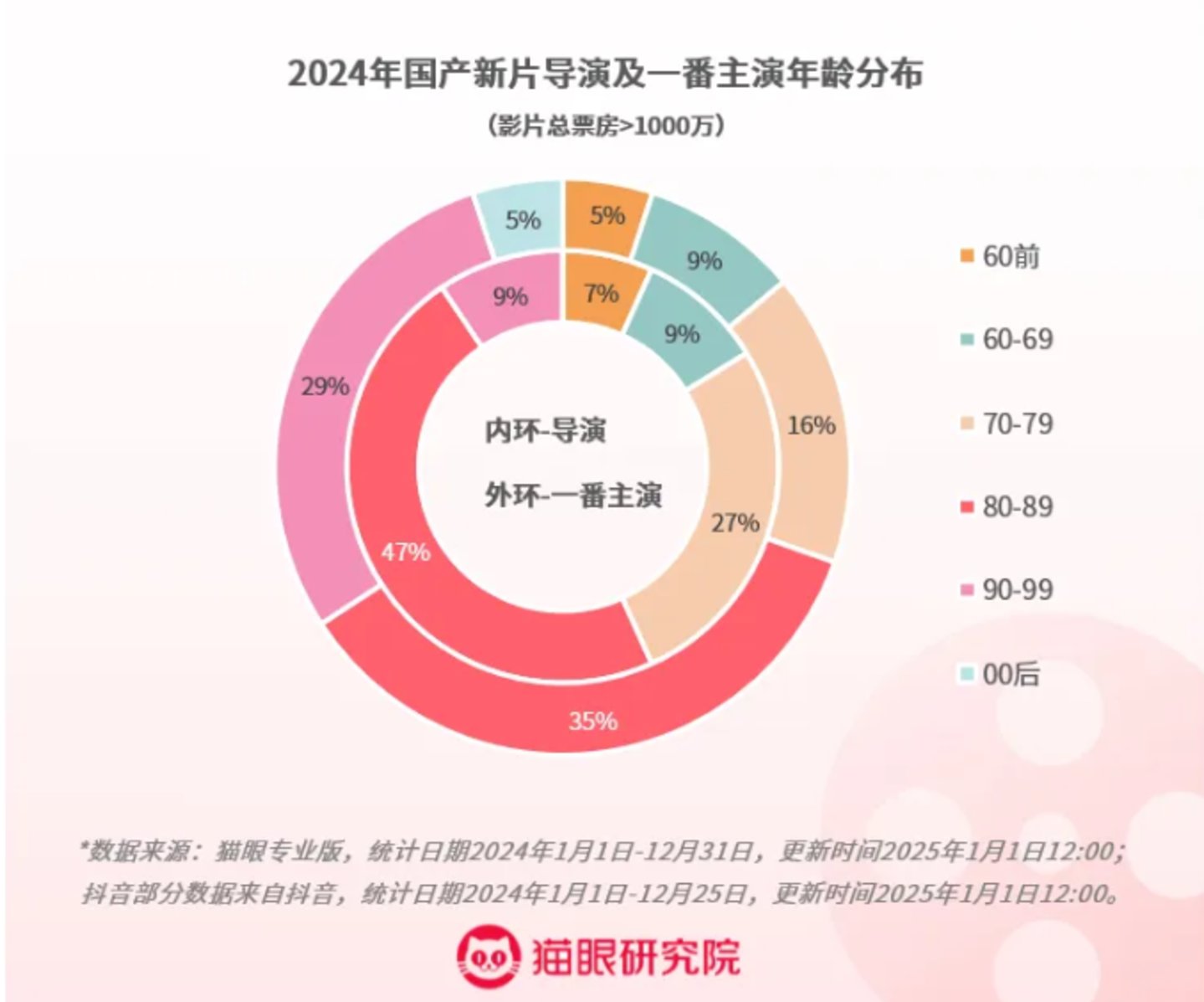 过去几年,由于中生代导演纷纷折戟沉沙,大批青年导演开始承担起了市场主力的任务,根据猫眼专业版发布的《2024中国电影市场数据洞察》显示,在去年票房超过1000万的电影中,有超过半数是青年导演的作品。