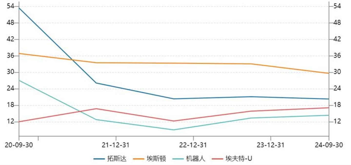 对比同行来看,拓斯达的毛利率不算差,高于机器人、埃夫特,低于埃斯顿的29.7%。
