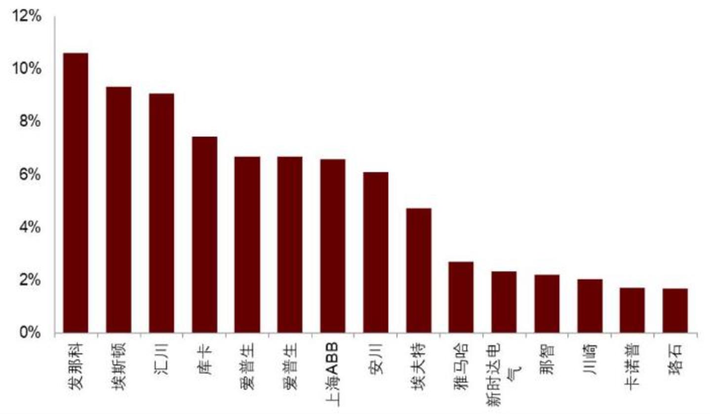 图:2024Q1中国工业机器人市场格局,来源:中金公司